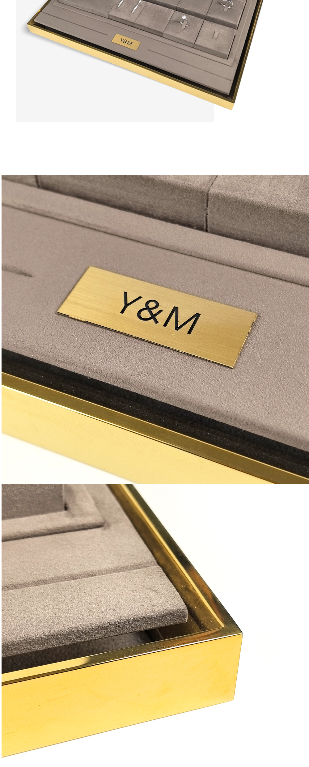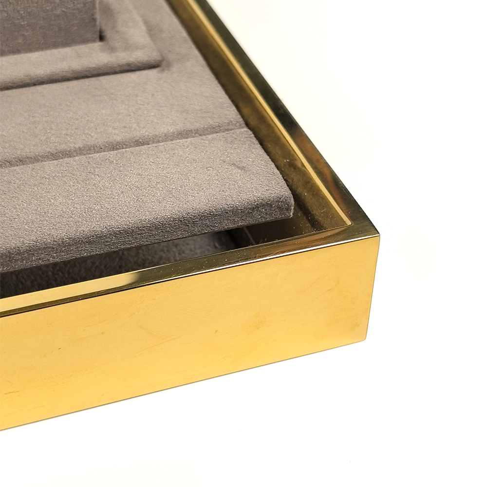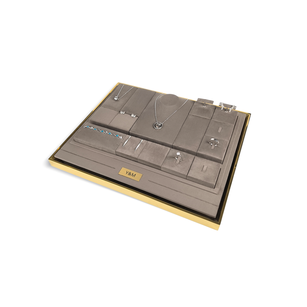 Champagne Gold Metal Leather Velvet Jewelry Display Set Window Jewellery Display Set J2509-5