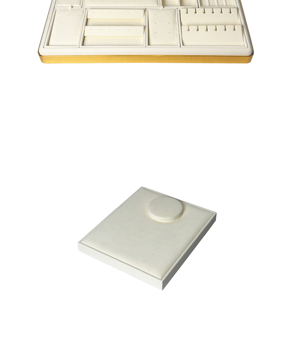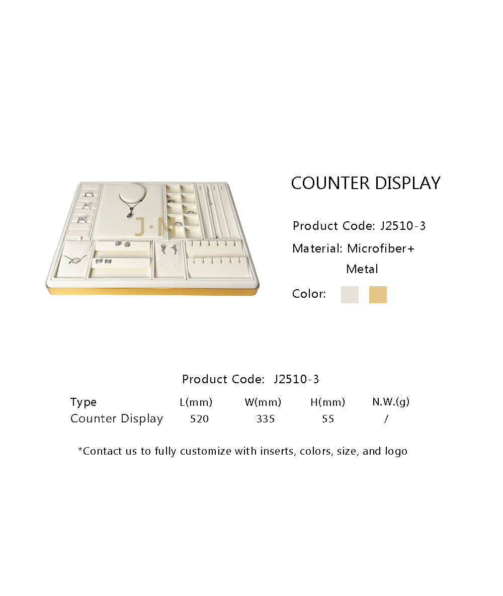 Microfiber Electric Plated Metal Jewelry Display Counter Display Set Custom Size J2510-3